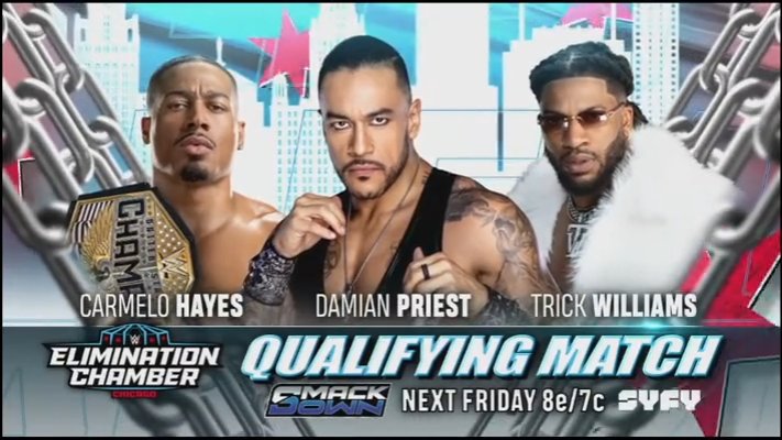 -Carmelo Hayes vs Damian Priest vs Trick Williams in an Elim...