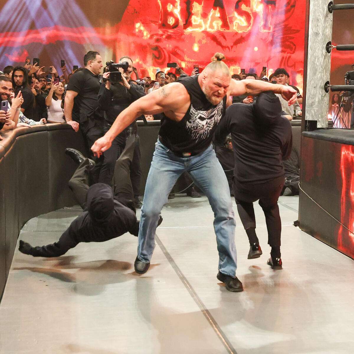 Fans learned the identity of at least one of the men who was attacked by Brock Lesnar in a Raw segment.